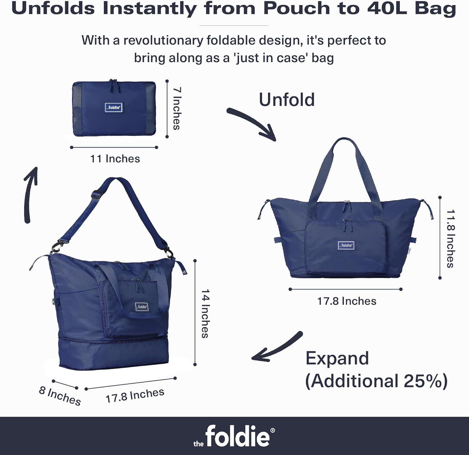 Foldable Travel Tote Bag for Women – 40L Weekender Bag with Multiple Pockets – Carry On Personal Item Travel Bag