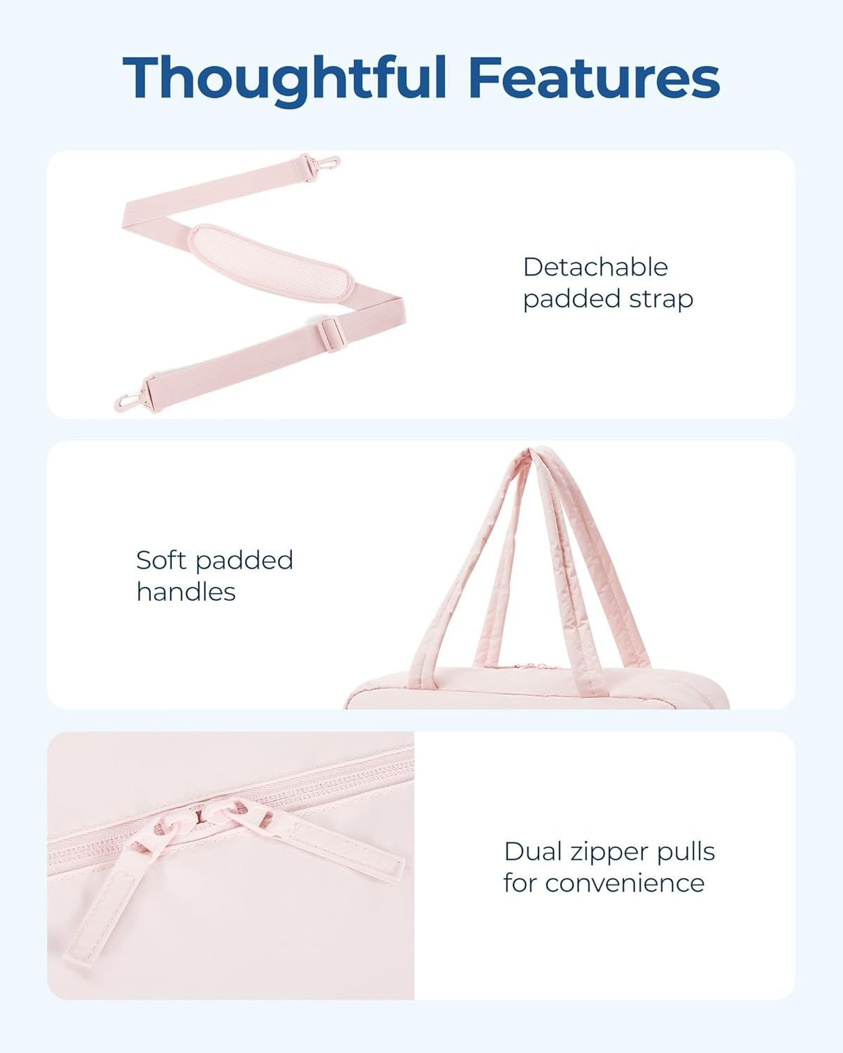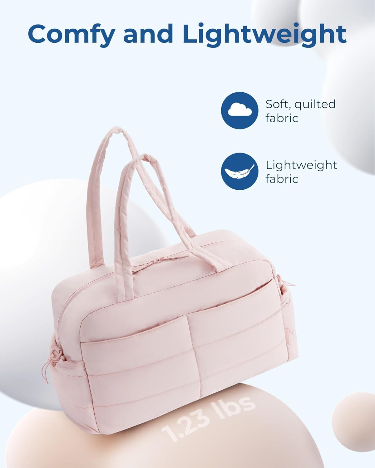 Travel Duffle Bag Gym Bag for Women, 31L Puffer Tote Bag Quilted Laptop Carry on, Weekender Overnight Bag Organizer Duffel Bag for Travel, Pink